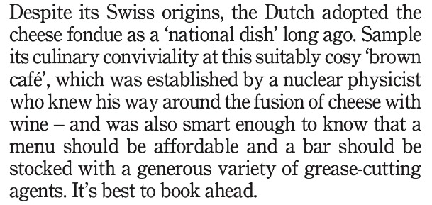 Once, due to a deadline crunch, I had to review five of Amsterdam’s best cheese fondue restaurants in five days. It felt like a dream assignment. At first…